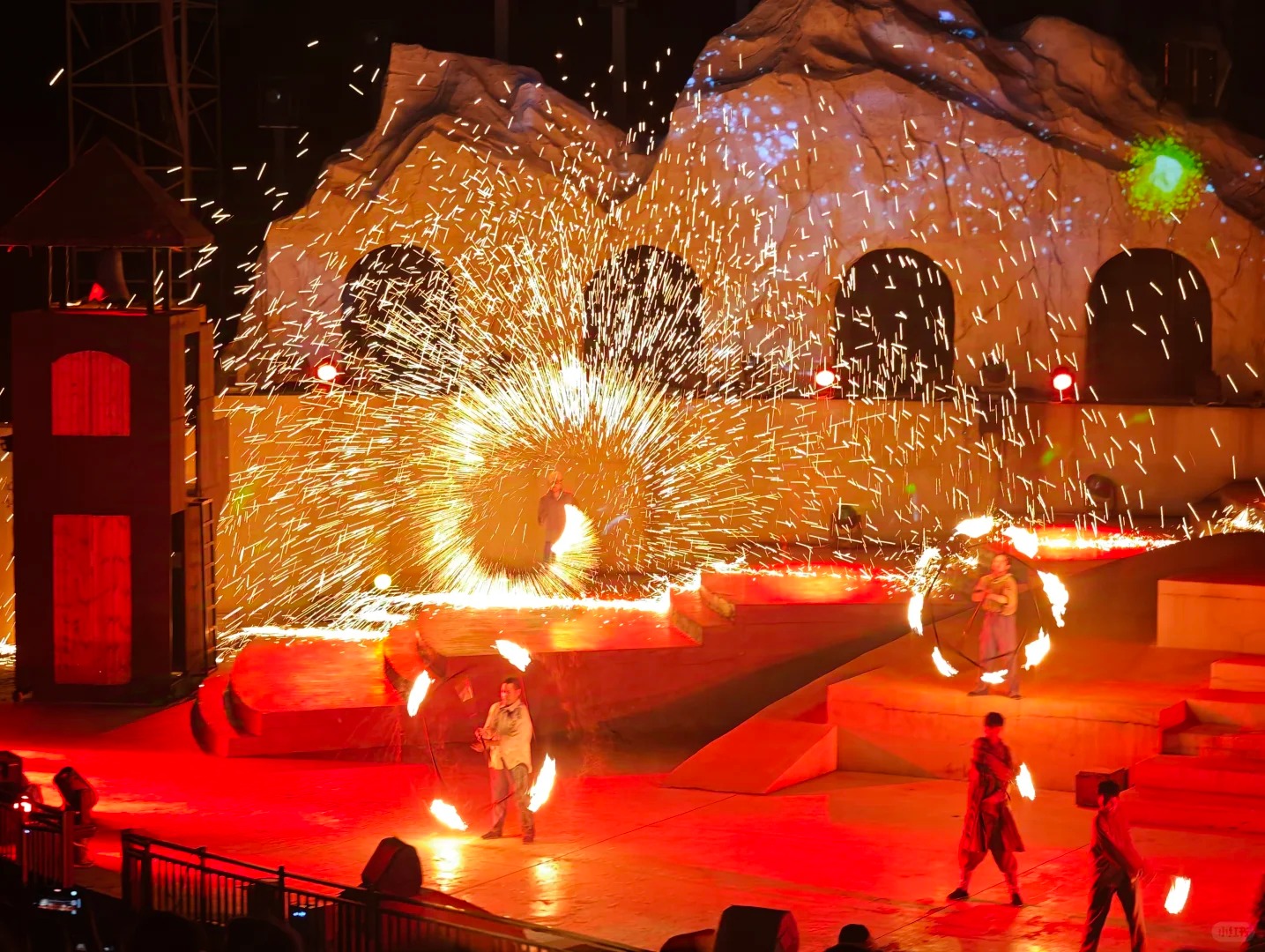 星雨洒落惊梦处,铁火纷飞绽冷光。#打铁花 #铁花打出璀璨星河